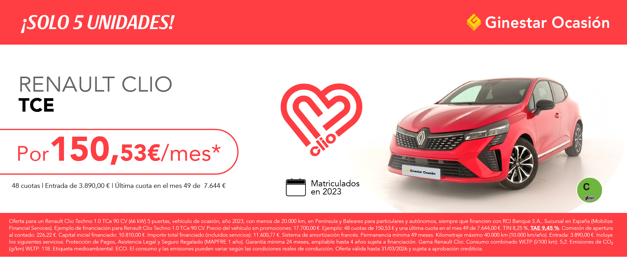 ¡Oferta San Valentín! Tu Renault Clio por 150,53€/mes*
