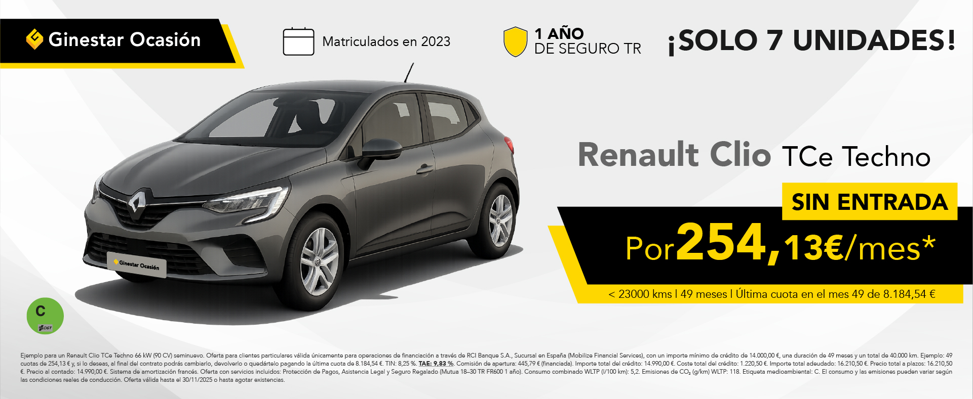 ¡Solo 7 unidades! Renault Clio por 254€/mes ¡Sin Entrada!