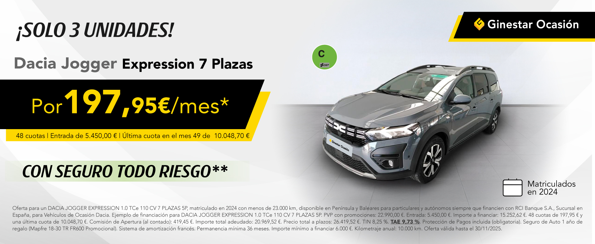 ¡Tu Dacia Jogger por 197,95€/mes*!